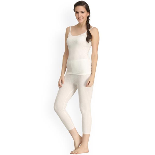 Thermals and CamisolesThis off-white thermal set consists of a top and a pair of leggings